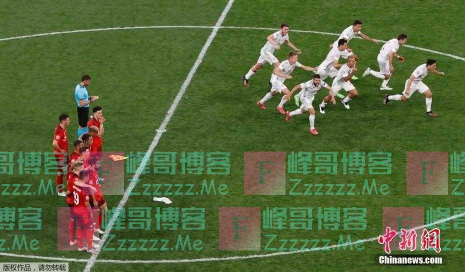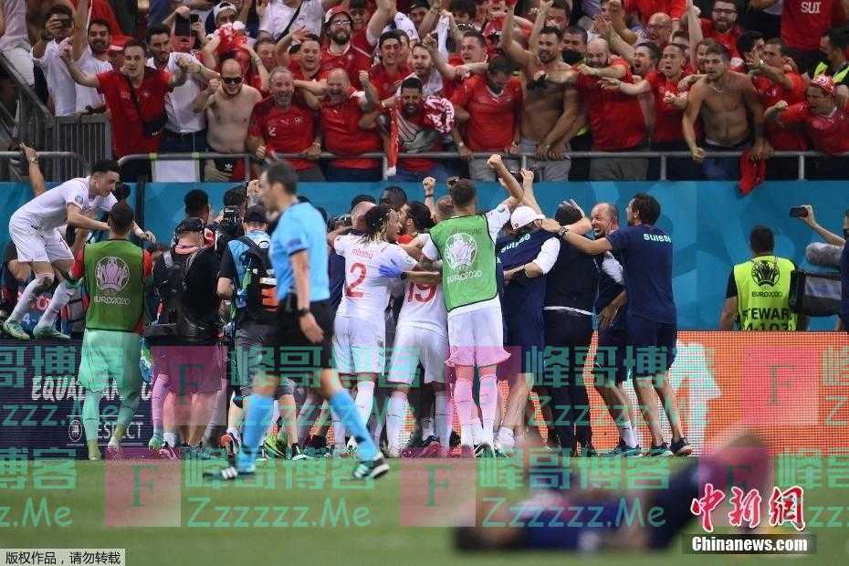 当地时间6月28日,欧洲杯八分之一决赛终场哨声响起后,瑞士球员围在一起庆祝胜利。