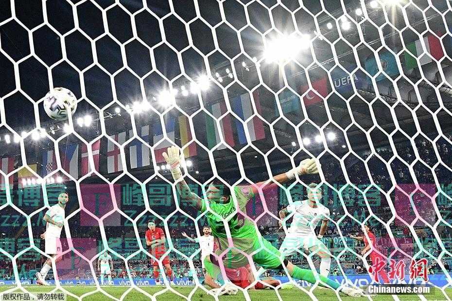 6月11日,在意大利与土耳其的比赛中,意大利前锋因莫比莱打入第二球。