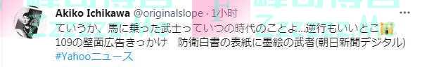 《朝日新闻》:以涩谷109大厦墙壁上的广告为契机,《防卫白皮书》的封面采用了武士的日本水墨画
