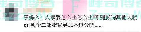 有乘客表示,为了在走道里行走,小心翼翼绕过“二郎腿”,几乎走了一个“S”型。