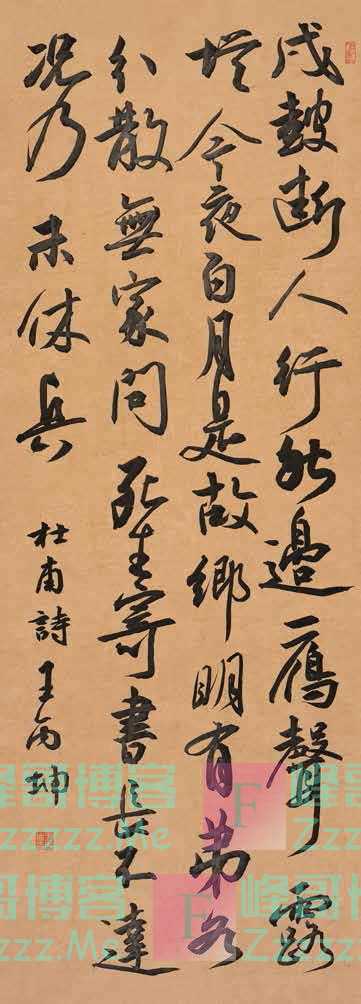 释文:戍鼓断人行,边秋一雁声。露从今夜白,月是故乡明。有弟皆分散,无家问死生。寄书长不达,况乃未休兵。