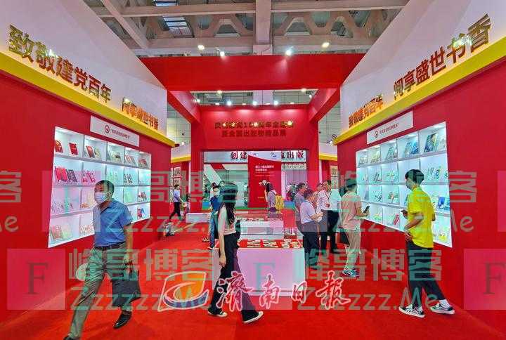 第30届全国图书交易博览会于7月15日在济南启幕。本届书博会由国家新闻出版署、山东省人民政府、济南市人民政府主办,以“致敬建党百年 阅享盛世书香”为主题,主会场设在济南的山东国际会展中心,并在烟台市、泰安市设立分会场。(济南日报记者 崔健 摄)
