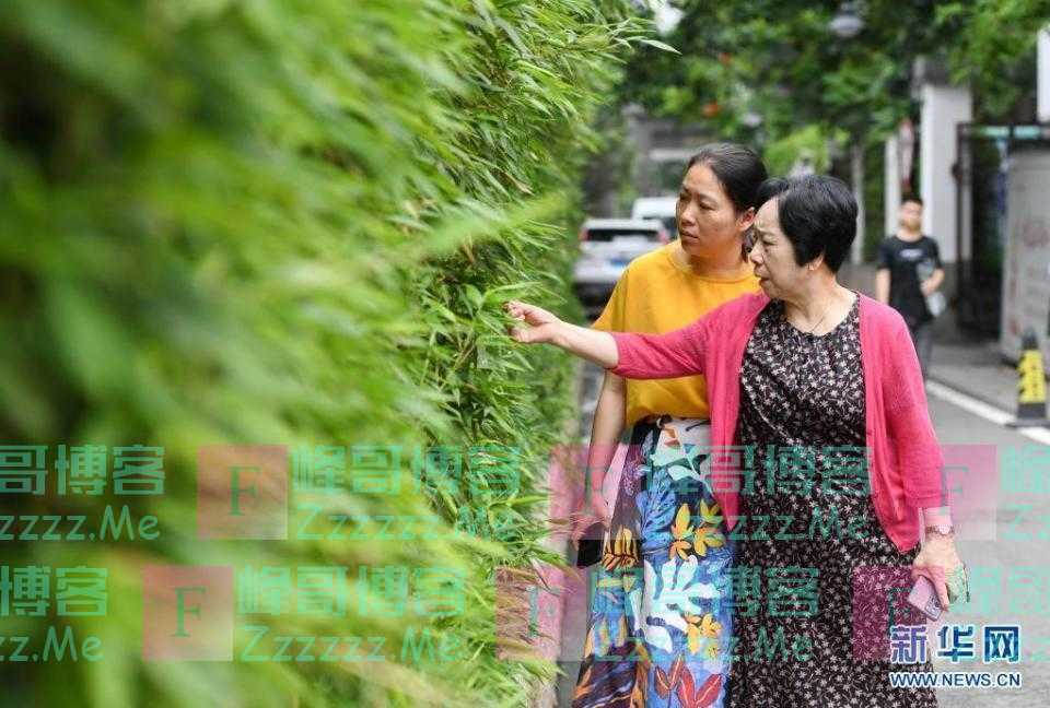 林丹(右)和军门社区党委副书记谢榕在社区检查景观绿植等工作(6月23日摄)。新华社记者 林善传 摄