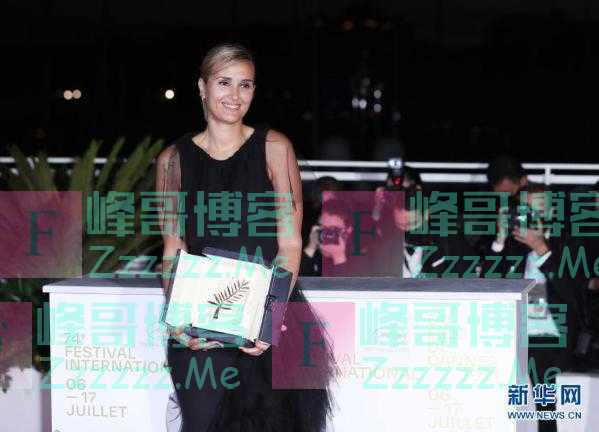 7月17日,在法国戛纳,影片《钛》的导演朱利娅·迪库尔诺出席拍照式。《钛》获得最高奖最佳影片金棕榈奖。第74届戛纳国际电影节17日闭幕。 新华社记者 高静 摄