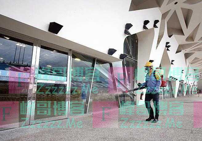 工作人员在台湾一个疫苗接种点外消毒(台媒图)