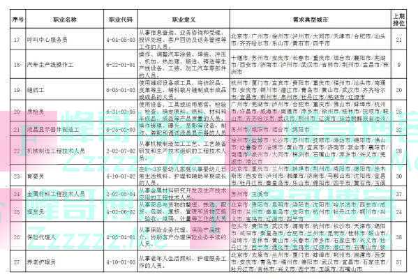 人社部指出,与2021年第一季度相比,本期“排行”有以下特点: