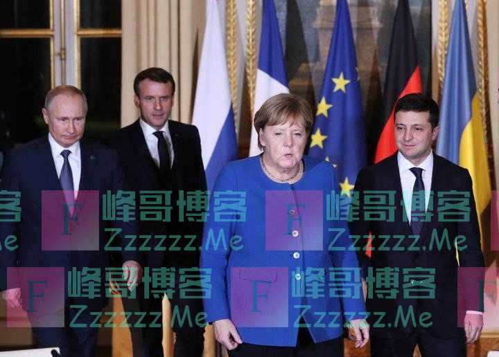 2019年12月9日,在法国巴黎,(从左到右)俄罗斯总统普京、法国总统马克龙、德国总理默克尔和乌克兰总统泽连斯基出席“诺曼底模式”四国峰会。(新华社发)