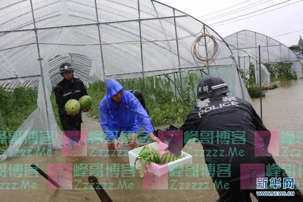 本文转自【新华网】; 7月26日,浙江省舟山市岱山县公安局城郊派出所民警帮助瓜农抢收西瓜。 当日上午9时50分前后,台风“烟花”在浙江嘉兴平湖沿海二次登陆,带来大范围降雨,受其影响的浙江各地群众积极开展自救。新华社发