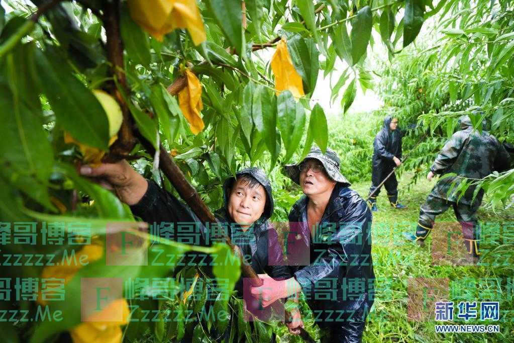 本文转自【新华网】; 7月26日,在浙江省湖州市德清县钟管镇曲溪村一处果园,救援人员帮助果农抢收桃子。 当日上午9时50分前后,台风“烟花”在浙江嘉兴平湖沿海二次登陆,带来大范围降雨,受其影响的浙江各地群众积极开展自救。新华社发(王正 摄)