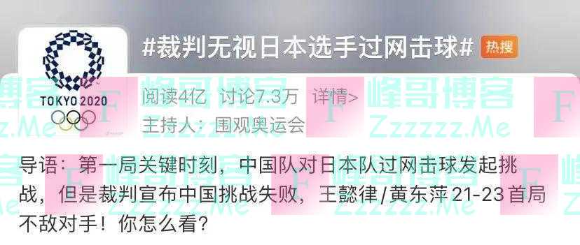 #裁判无视日本选手过网击球# 迅速登上热搜,阅读量达4亿。