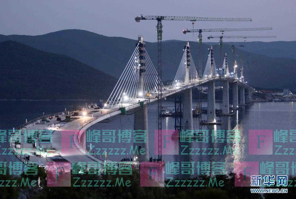 本文转自【新华网】; 这是7月28日在克罗地亚南部的小斯通湾附近拍摄的佩列沙茨大桥施工现场。 当地时间28日23时许,随着中国建设者用桥面吊机把最后一片重达220吨的钢箱梁提升到位并完成焊接,中国企业承建的克罗地亚佩列沙茨跨海大桥成功合龙。佩列沙茨大桥是一座长2440米、宽22.5米的公路斜拉桥,横跨克罗地亚南部亚得里亚海的小斯通湾,连接该国大陆与佩列沙茨半岛。 新华社发(卡加利耶摄)