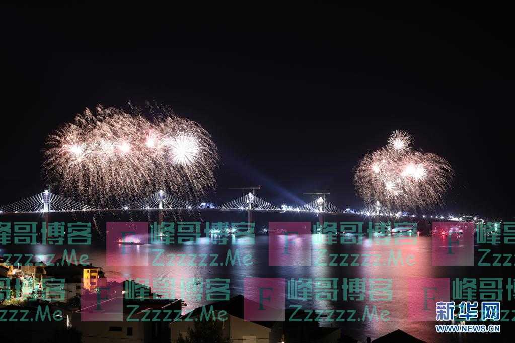 本文转自【新华网】; 7月29日凌晨,在克罗地亚南部的小斯通湾,为庆祝佩列沙茨大桥合龙的焰火表演照亮海面。 当地时间28日23时许,随着中国建设者用桥面吊机把最后一片重达220吨的钢箱梁提升到位并完成焊接,中国企业承建的克罗地亚佩列沙茨跨海大桥成功合龙。佩列沙茨大桥是一座长2440米、宽22.5米的公路斜拉桥,横跨克罗地亚南部亚得里亚海的小斯通湾,连接该国大陆与佩列沙茨半岛。 新华社发(卡加利耶摄)