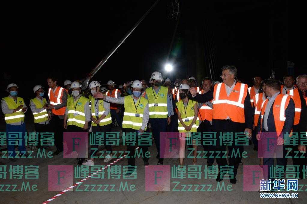 本文转自【新华网】; 7月29日凌晨,克罗地亚总理普连科维奇(前右二)在佩列沙茨大桥上向中国建设者招手致意。 当地时间28日23时许,随着中国建设者用桥面吊机把最后一片重达220吨的钢箱梁提升到位并完成焊接,中国企业承建的克罗地亚佩列沙茨跨海大桥成功合龙。佩列沙茨大桥是一座长2440米、宽22.5米的公路斜拉桥,横跨克罗地亚南部亚得里亚海的小斯通湾,连接该国大陆与佩列沙茨半岛。 新华社记者 高磊 摄