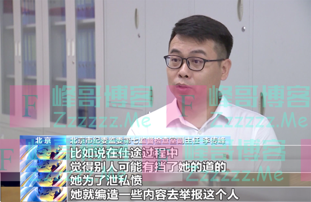 北京市纪委监委第七监督检查室副主任 李传峰:比如说在仕途过程中觉得有人挡了她的,她为了泄私愤,编造一些内容去举报这个人。