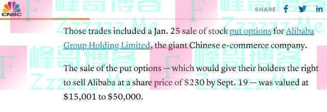 不仅如此,美国CNBC新闻网的报道还显示,这个美国政客在今年1月25日进行的一次股票交易中,还从中国一家大型电商企业身上赚取了一笔钱。当时他出售了该公司一笔价值范围在1.5万到5万美元之间的股票期权。