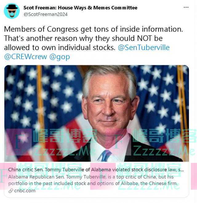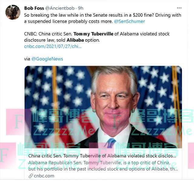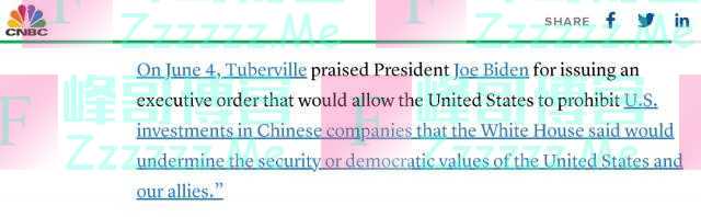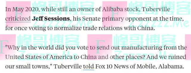 而且,《商业内幕》网站和CNBC新闻网还提及,这个塔博维尔其实在今年6月时被媒体扒出他投资这家中国公司股票的事情,当时塔博维尔曾经信誓旦旦地表示他在去年准备参选参议员的时候就已经“完全放弃”了这家中国公司的股票资产。