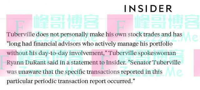 不过,就像很多敢做不敢认的美国政客一样,塔博维尔目前就此事给出的最新解释是,这些股票操作都是他的理财顾问干的,他“毫不知情”。