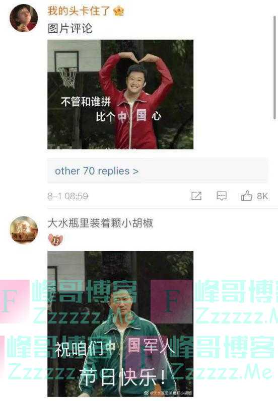 在这条微博评论区,除了网友同祝建军节快乐的留言,“中国”表情包八一建军节限定款出炉。↓