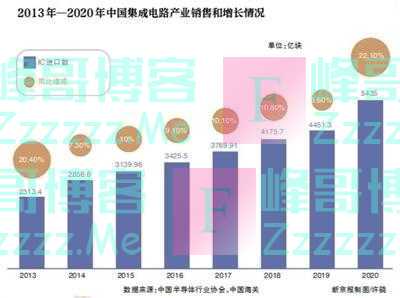 据全球知名半导体市场咨询机构IC Insights分析,2020年我国芯片的自给率或在15.9%左右。2020年我国市场的芯片规模约为1434亿美元,其中约40%左右(即574亿美元)留在国内市场销售使用。在这1434亿美元的芯片中,本土生产的仅有227亿美元,占比约15.9%。