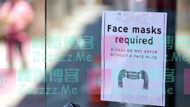 店面门口提示牌提示人们戴口罩才能入内