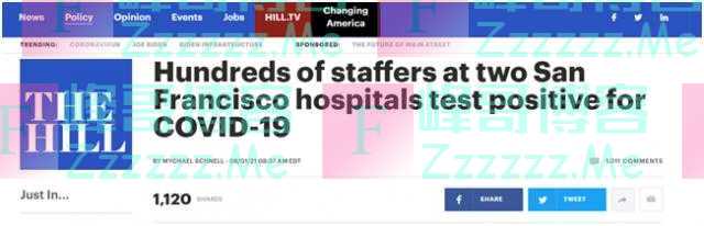 旧金山两医院至少233员工阳性,“大多数人打了疫苗”》发布于2021-8-3