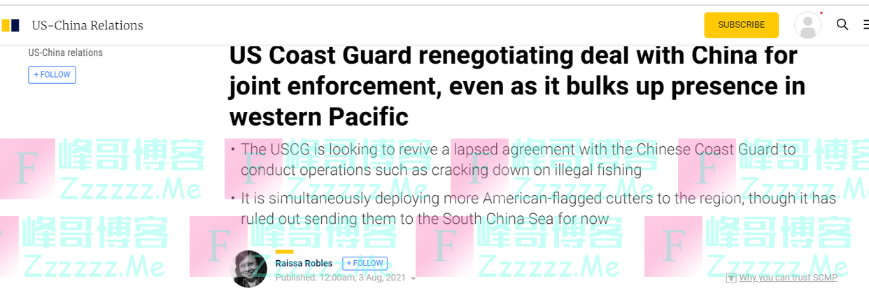 刚将矛头对准中国海警,美海岸警卫队又声称正与中方重谈恢复已失效联合执法协议》发布于2021-8-4