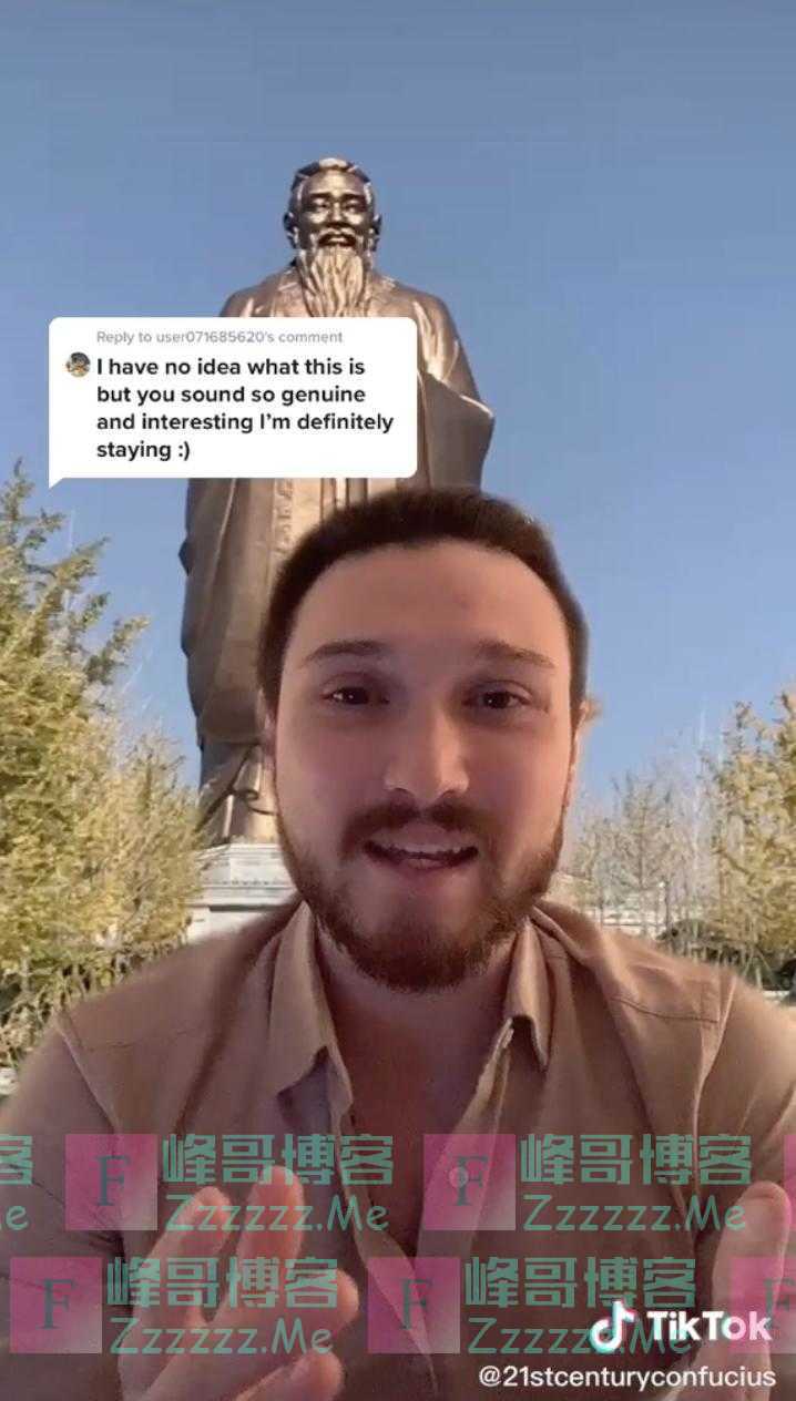 TikTok英国用户James对孔子颇有研究。为了传播孔子思想和儒家学说,他特意创办了账号@21stcenturyconfucius。James告诉TikTok网友,孔子是一位伟大的中国思想家,生活在2000多年前。“孔子学识渊博,很多学生尊他为师。孔子逝世后,学生们把他的言行编写成一本书,这就是《论语》。”
