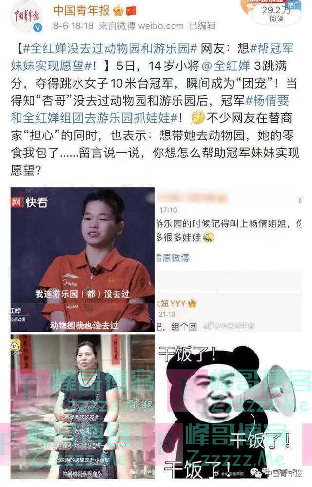 此前,全红婵一句“没去过游乐园、动物园”,戳中了无数人的心。