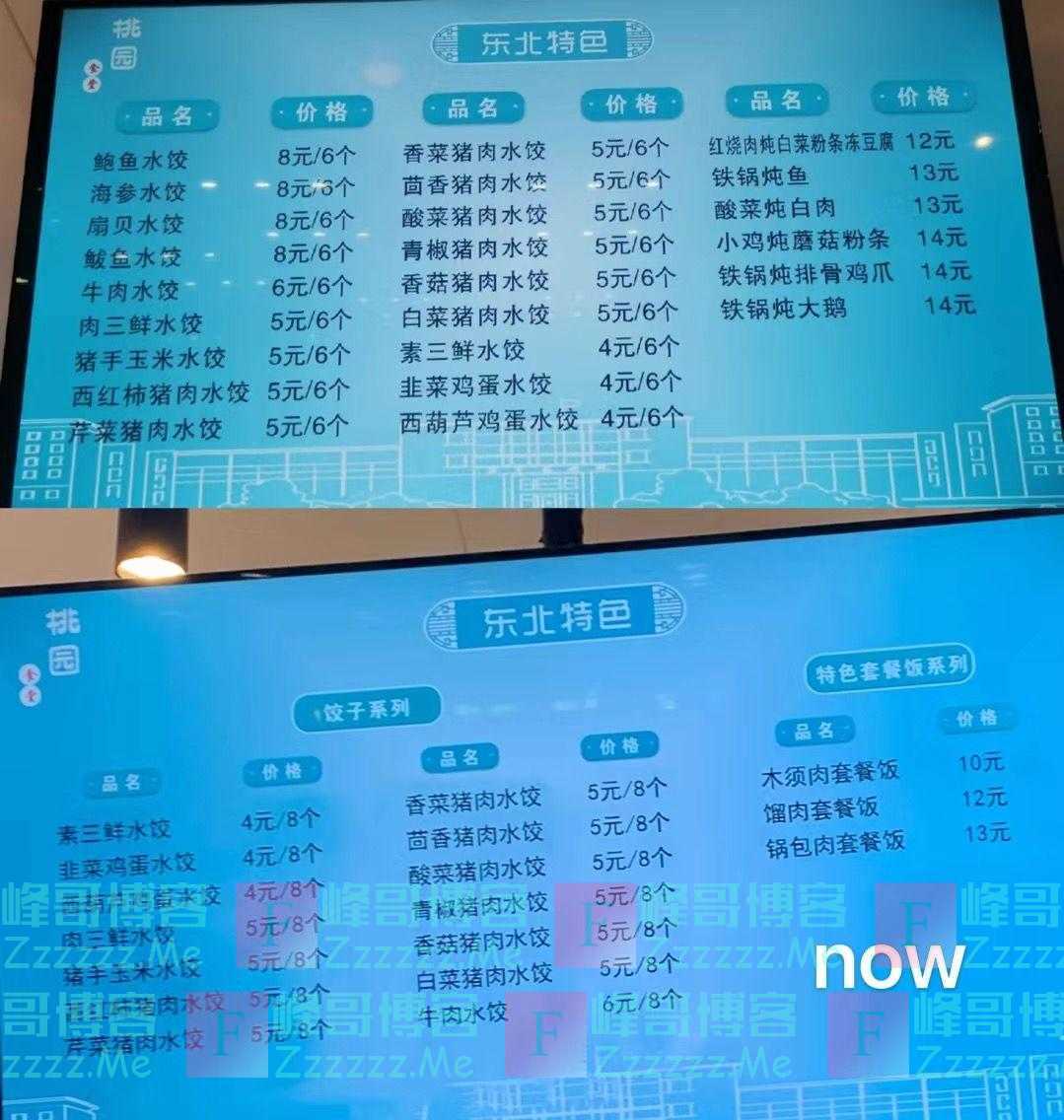 上述学生告诉记者,8月12日,桃园食堂菜品种类和价格均发生变化。在“东北特色”窗口,鲍鱼水饺、海参水饺、铁锅炖大鹅等菜品被下架,上新了锅包肉套餐饭、木须肉套餐饭等平价菜。此外,牛肉水饺等保留菜品的价格进一步下调,下调幅度约25%。
