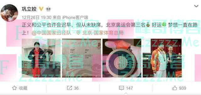 正义虽迟但到,巩立姣曾三次递补获得奖牌最终东京圆梦》发布于2021-8-14