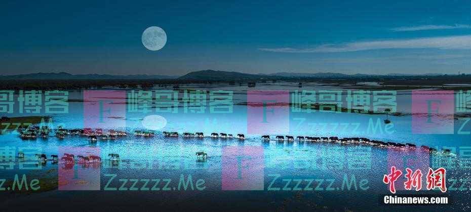 本文转自【中国新闻网】; 今夏,内蒙古自治区呼伦贝尔额尔古纳市雨水丰沛,湿地、草原、森林三大生态系统的壮丽自然风光吸引众多摄影爱好者。 额尔古纳湿地内流水盈盈,水草丰美。清晨雾气朦胧,云卷云舒,宛若仙境;傍晚红霞余辉,色彩斑斓,放射出艳丽的霞光;夜晚月光如水,清幽静谧,旖旎风光令人陶醉。 位于中国北部边陲呼伦贝尔草原的额尔古纳湿地拥有亚洲原生木本湿地中面积最大、保护最完整、物种最丰富的湿地,享有“亚洲第一湿地”的美誉。图为月亮倒映在河水中,马群轻轻地趟过河水。武飞虎 摄