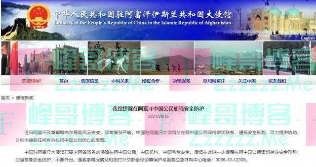 中国驻阿富汗大使馆发声》发布于2021-8-16