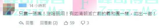 也有网友痛批:只靠一张嘴!没啥用!有如“义和团”一样,如出一辙!↓