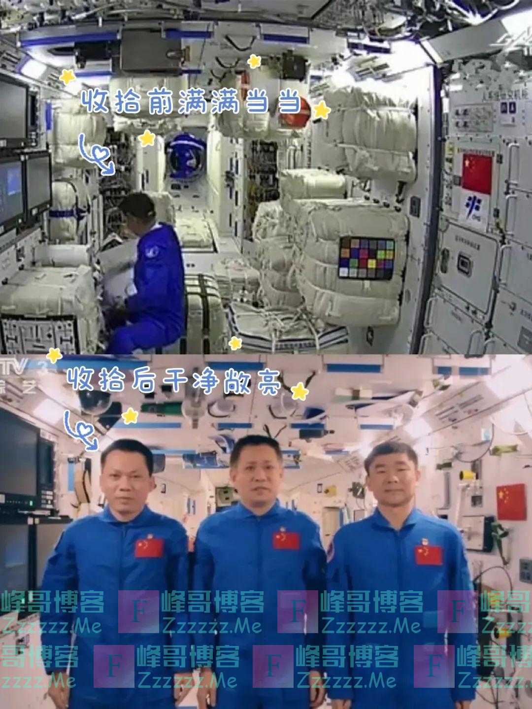 除了开展各项实验,整理内务也不能停。还记得他们刚进驻天和核心舱时,舱内堆满了大大小小的包裹,现在舱内环境已变得干净整洁、秩序井然。收纳的秘诀 ,就是在地板上设置储物空间 ,那些暂时用不到的包裹 ,就会被收纳进空间站的夹层之中 ,使“太空家园”更加温馨舒适。