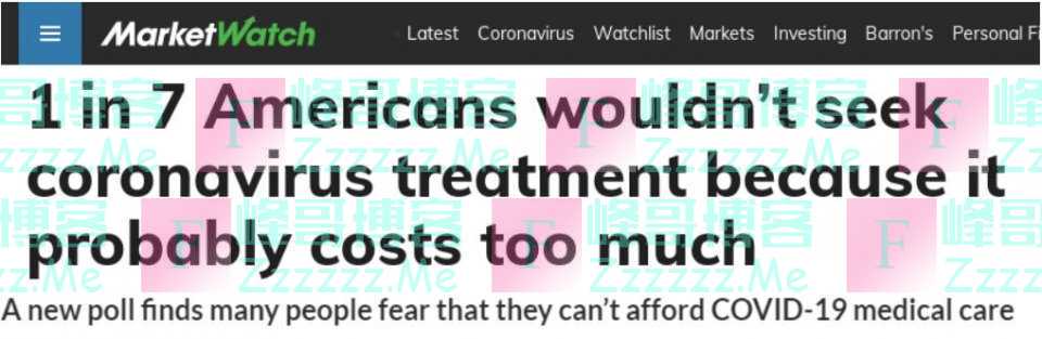 没有保险就看不起病,成了疫情下底层民众命运的真实写照。盖洛普民调发现,美国平均每7个人中就有1人因无力支付高额医疗费用,即使感染了新冠病毒也不敢就医。