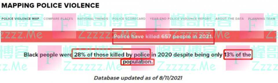 据美国“警察暴力地图”(MPV)网站统计,2020年美国警察共开枪打死1127人,只占美国总人口13%的黑人占到了被警察枪杀人数的28%。今年截至目前的最新数据显示,美国警察已经杀死657人,黑人占比仍远高于其占美国总人口比例。