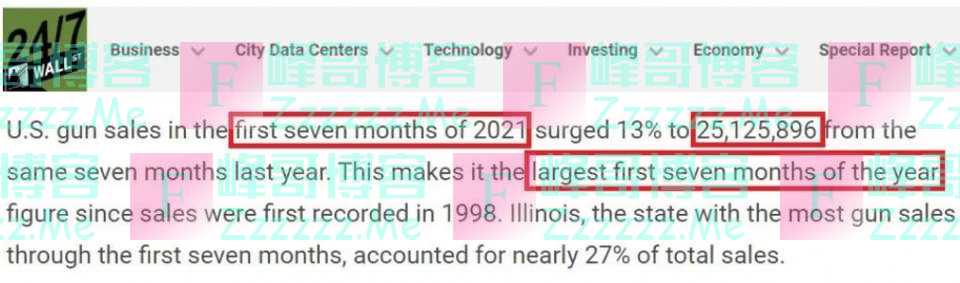 美媒发布的最新数据显示,今年仅前7个月,美国枪支销量就已超过2500万支,创下1998年有记录以来的同期最大销量。