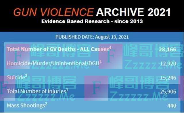 而“人人有枪”的结果就是枪祸的横行。美国“枪支暴力档案”(GVA)网站最新统计显示,截至当地时间19日,今年全美(不包括自杀在内的)各类枪支暴力事件已导致12920人丧生;造成四人以上伤亡的大规模枪击案已发生440起。