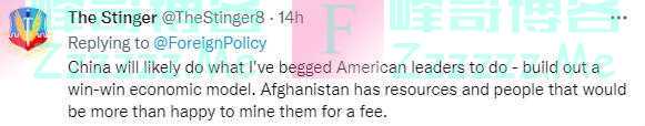 中国很可能会做我曾恳求美国领导人做的事情--建立一个双赢的经济模式,阿富汗有资源,人们会很乐意通过开矿获利。
