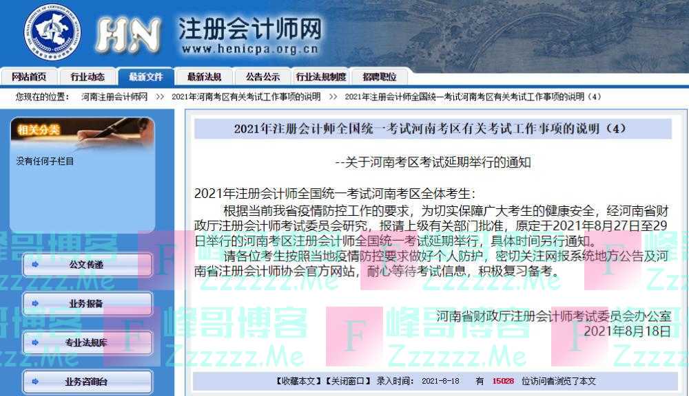 北京注册会计师考试办公室8月20日发布通告称,原定于2021年8月27日至29日举行的北京地区注册会计师考试(含涉外考场)延期举行。