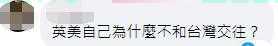 也有网友毫不客气,讽刺称,“英美自己为什么不和台湾交往?”