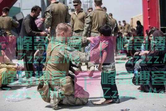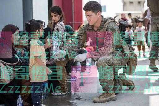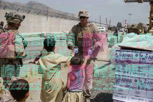 美国国防部在推文中介绍称,照片中的士兵来自美国海军和海军陆战队,地点就位于喀布尔的哈米德·卡尔扎伊国际机场。照片中,有美国大兵甚至半跪着把矿泉水递到阿富汗儿童的面前。