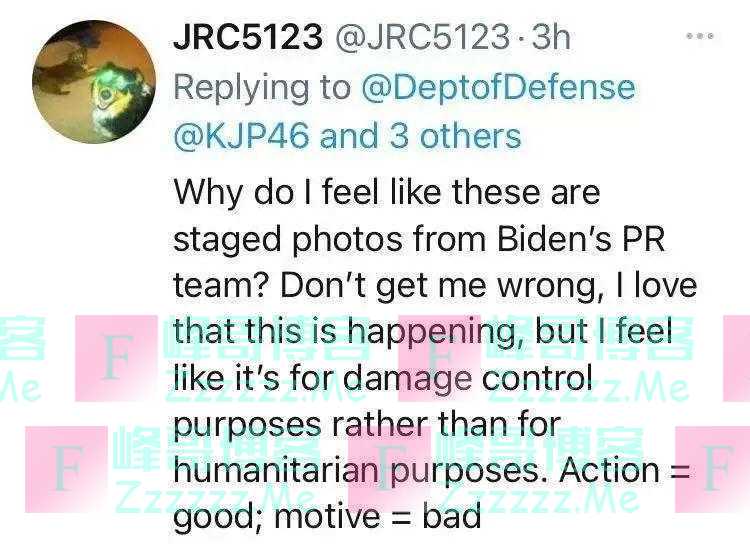 还有网友说:“为什么我感觉这些是拜登公关团队的摆拍?别误会,我喜欢这种事,但是我感觉这是为了挽回形象而不是出于人道目的。行为是好的,动机是坏的。”↓