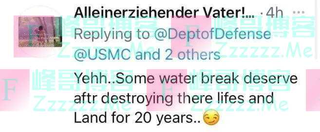 有网友犀利指出:“是啊……他们(阿富汗人)的生命和土地被破坏了20年,也该喝口水歇歇了。”↓