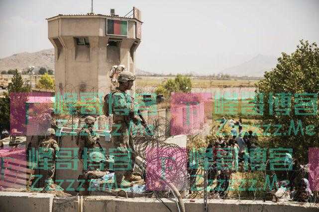 在喀布尔机场警戒的美军
