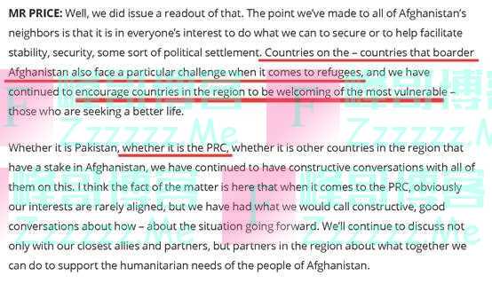 然而,正如haranguepost所说,美国国务院发言人普莱斯想让中国接纳阿富汗难民这件事,着实过于魔幻了。