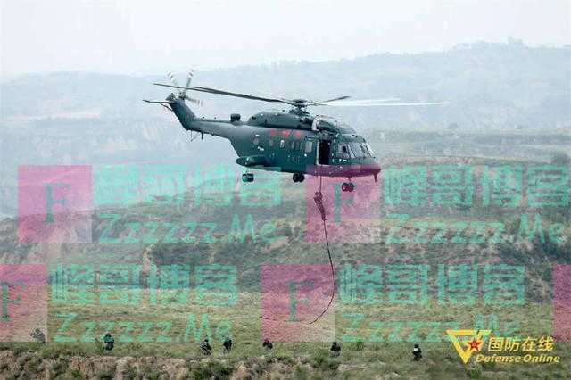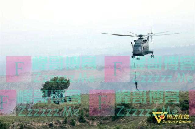随着指挥员一声令下,30余名特战队员搭乘直升机腾空而起,迅速出击。确定地点后,特战队员利用绳索交替掩护依次滑下,迅速展开行动……
