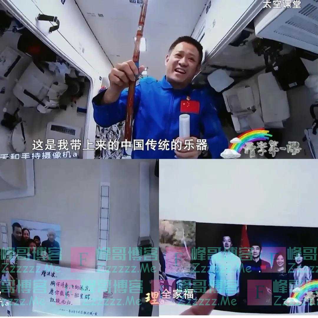 除此之外,三位航天员还向孩子们展示了跟随他们一起进入太空的其他物件。例如,聂海胜的笛子、刘伯明的全家福、汤洪波的全家福以及妻子的手写卡片。