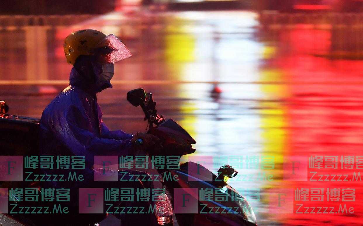 2020年8月12日晚,在雨中送外卖的骑手。新京报记者 李木易 摄