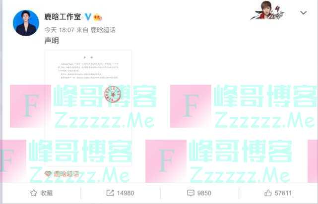 鹿晗工作室发声明!终止与爱彼品牌合作关系》发布于2021-9-6
